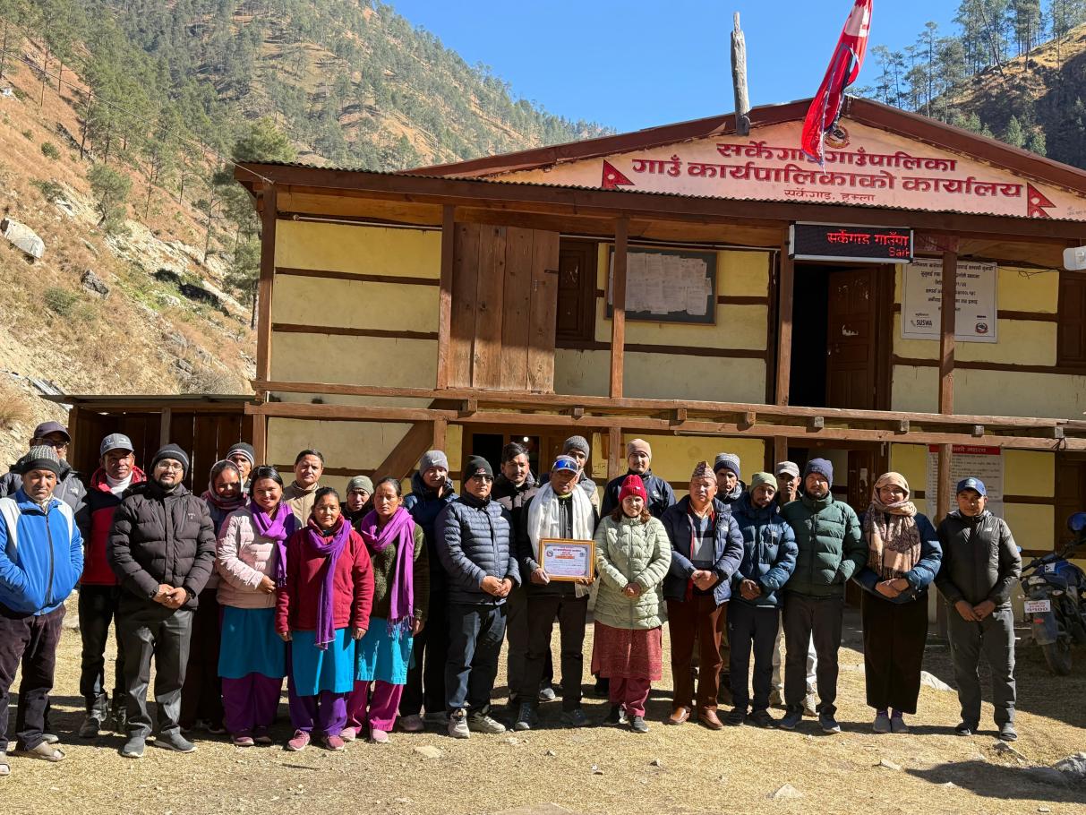 सर्केगाड गाउँपालिका वडा नं ७ भिमनगर निवासी सशस्‌त्र प्रहरी नायव निरिक्षक श्री दन्त बहादुर छत्याल ज्युले मिति २०८२।०२।०४ गते सर्वोच्च शिखर सगरमाथाको सफल आरोहण गर्नुभएकोमा सर्केगाड गाउँपालिकाबाट सम्मान कार्यक्रम सम्पन्न ।