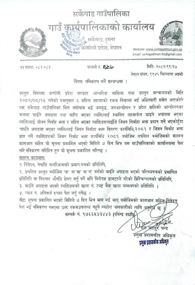 दलित भूमिहिन सुकुम्बासी र अव्यवस्थित बसाेबासीले निवेदन पेश गर्ने सम्बन्धी सूचना ।